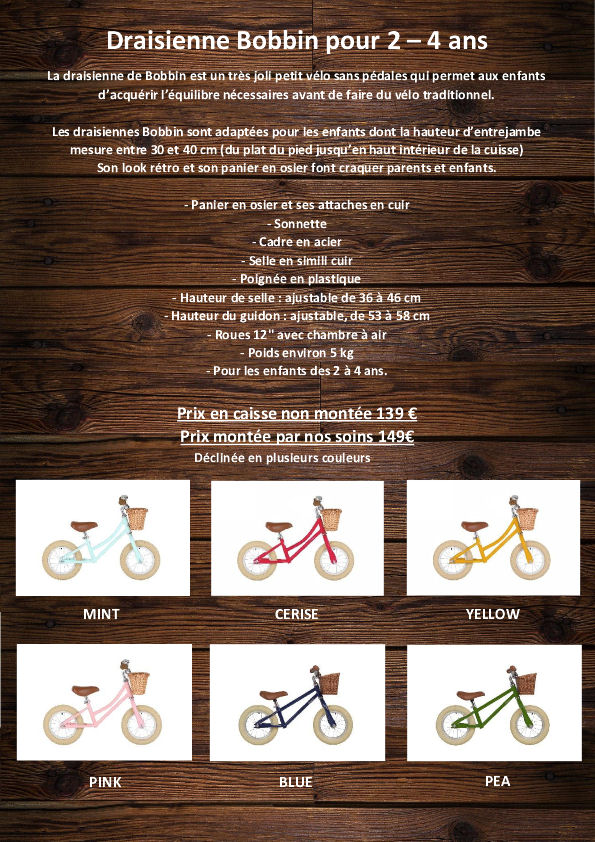 Ne chercher plus, avec les vélos BOBBIN vous craquerez tout autant que vos enfants sur leur jolie frimousse, les couleurs acidulées, , le petit panier délicieusement rétro mais surtout pour le sérieux de la fabrication !